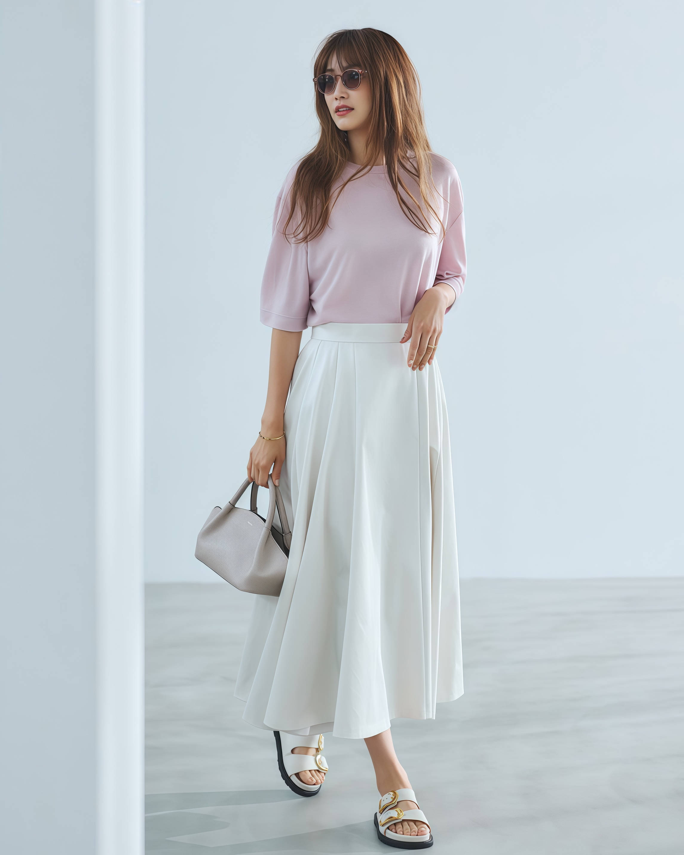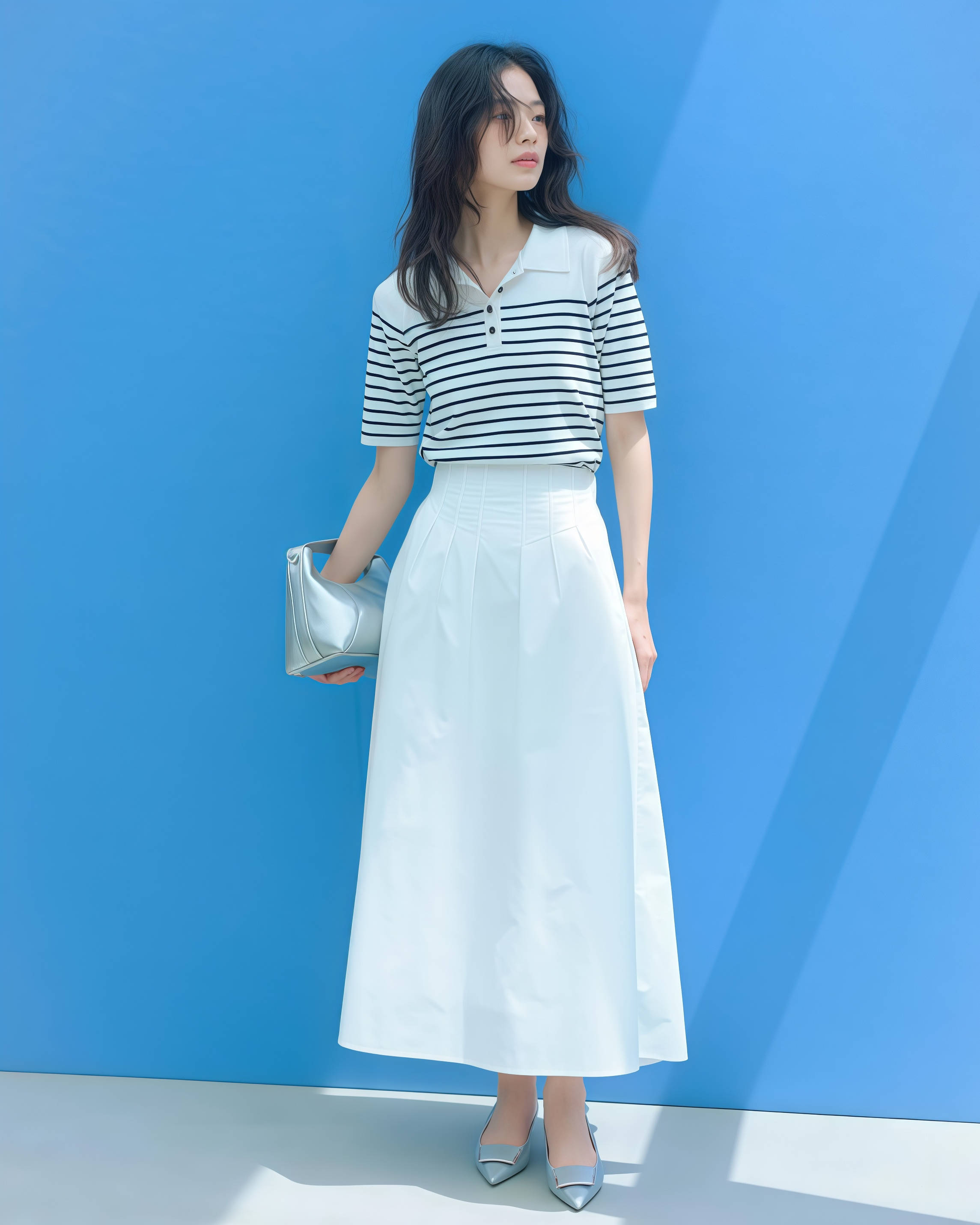 T恤的版型、领口、颜色,半裙的材质、长度、轮廓,每一个变量你稍微动一下,整套造型的风格就跟着变了,这种灵活度是那些复杂单品根本给不了你的。