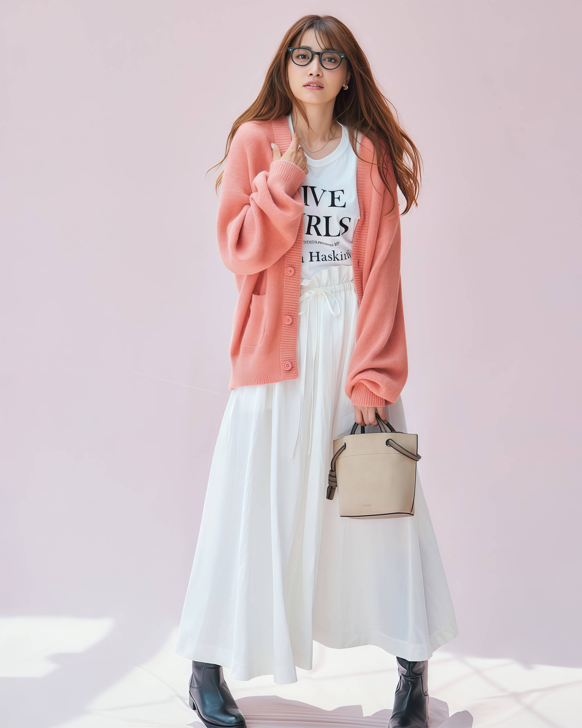 想要打造帅气,就要选择有反差的鞋子,比如短靴配半裙这个穿法,现在就特别流行,马丁靴或者切尔西靴都是可以的,T恤选择oversize的版型,裙子选择基础色,一套下来帅气程度翻倍,很适合喜欢酷飒风格的女生。