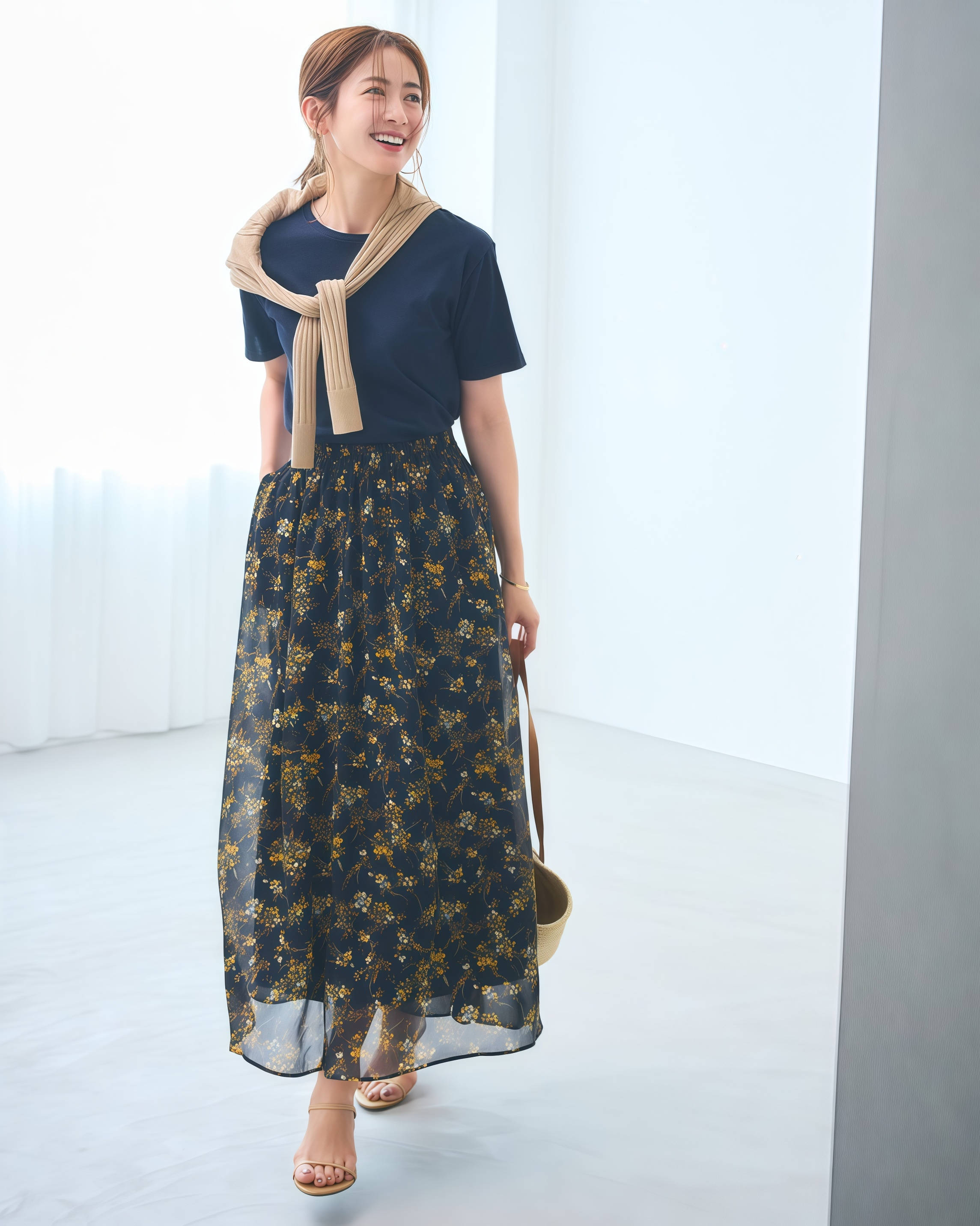 拥有一件纱裙,就等于拿捏了夏日的氛围感,即便是配上T恤,也能做到锦上添花的效果,这套好看是真好看,但也是最容易穿出廉价效果的一组,纱的质量直接决定你穿出来是仙还是土,选纱裙要看垂感,好的纱裙裙摆是自然往下坠的,穿起来更飘逸,所以买纱裙千万别贪便宜。